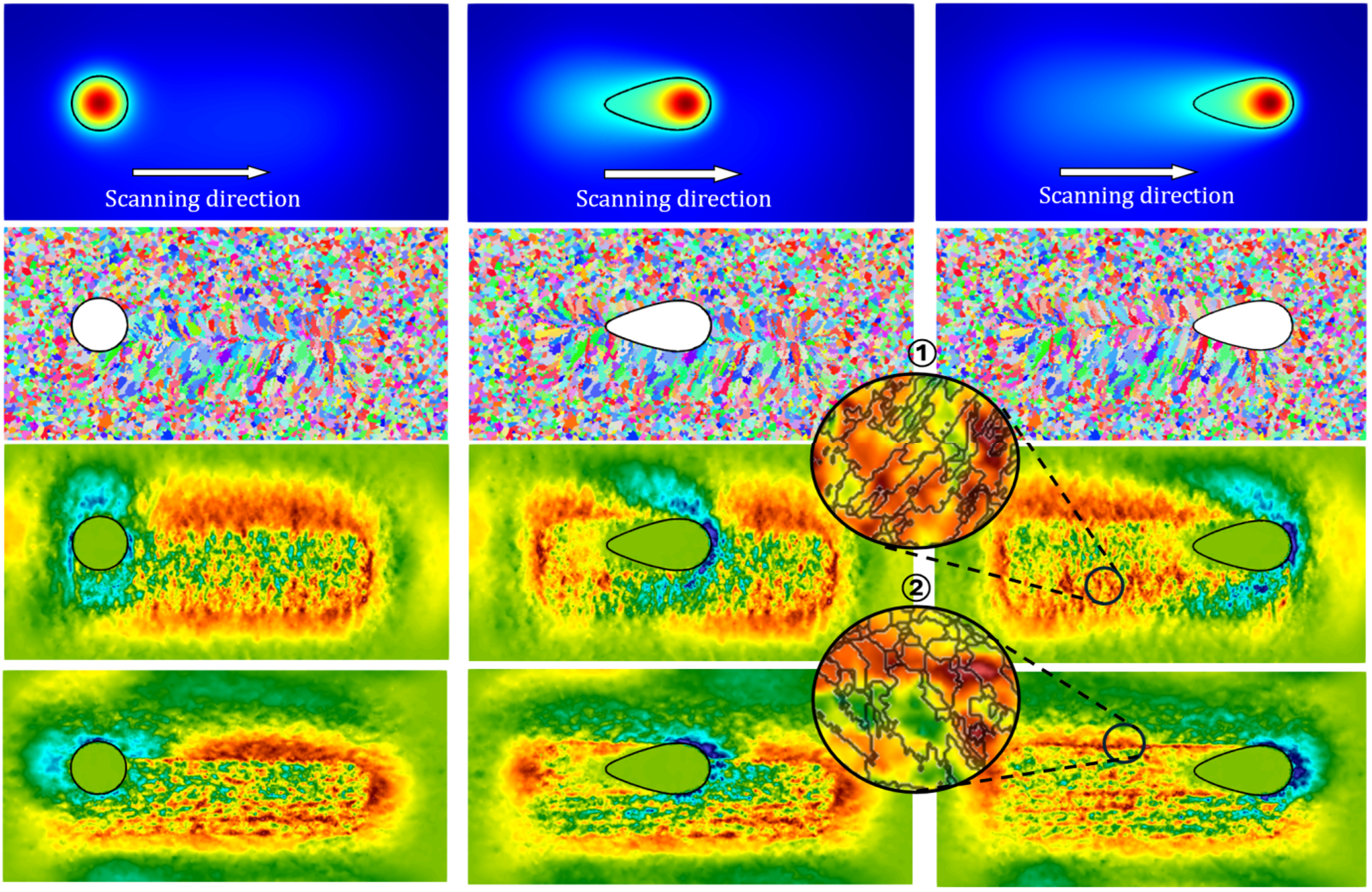 - Establish a multiscale framework linking process parameters, grain orientation, and localized stress distributions in the mushy zone and solid.