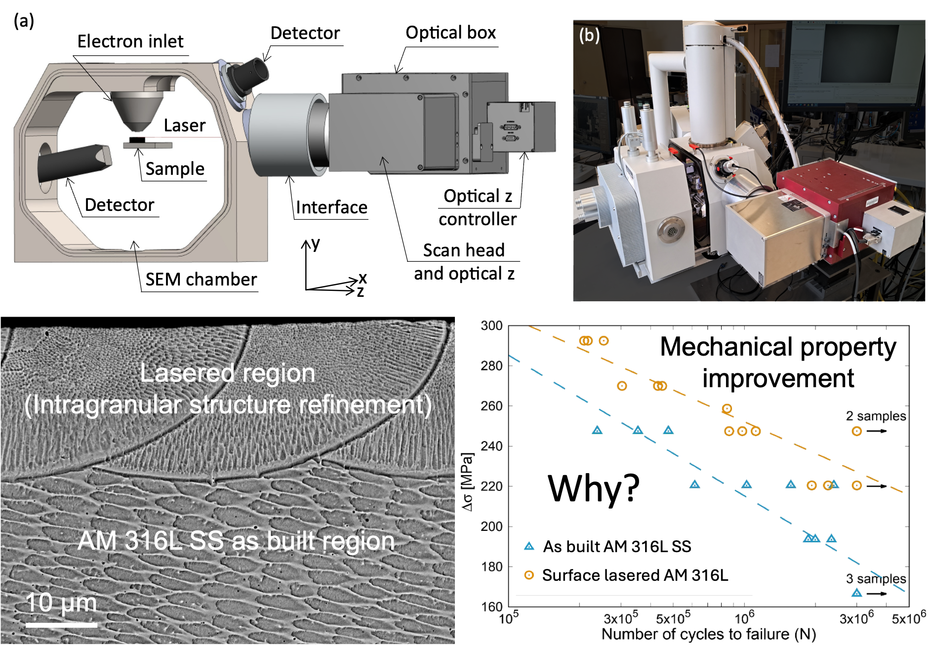 • Use high-vacuum CW Laser-SEM device to apply surface laser treatments on as-built AM specimens.